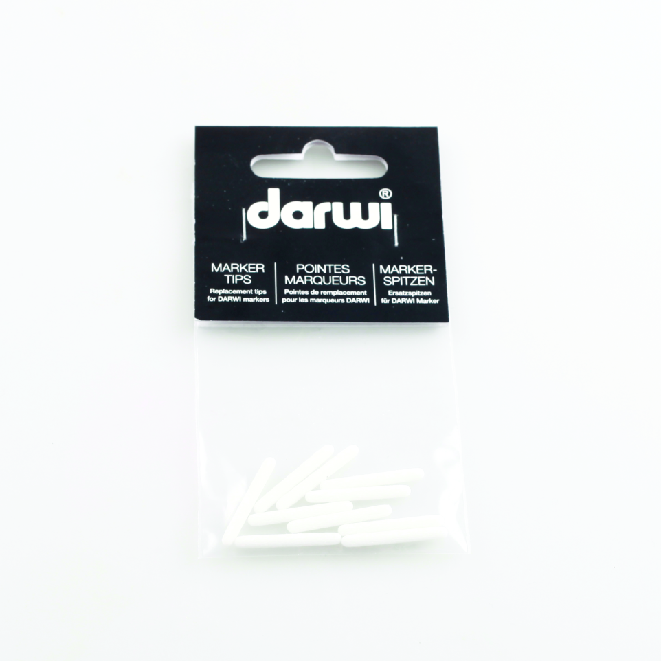 DARWI 10 vervangpunten voor glitter textielverf markers Met textielverf kun je een persoonlijk tintje geven aan je accessoires of je oude kleding nieuw leven inblazen! Deze verf is veelzijdig en eenvoudig te gebruiken, je kan ze aanbrengen met een penseel, pipet of sjabloon op verschillende natuurlijke (katoen, linnen, jute, wol, zijde) en synthetische stoffen, of ze nu licht of donker, dun of dik zijn. De romige textuur maakt het mogelijk om precieze lijnen en subtiele mengsels te maken. De samenstelling van de verf zorgt voor een uitstekende hechting aan de stofvezels. De geverfde stof blijft soepel en is wasbestendig. Hoe gebruik je een ventielmarker? Schud de marker: schud de marker stevig ondersteboven met de dop goed afgesloten. De kogel binnenin zorgt ervoor dat de verf gelijkmatig wordt gemengd. De punt activeren: druk een paar keer op de punt totdat deze doordrenkt is met kleur. Verwijder zo nodig overtollige verf. De punt opnieuw opstarten: als het verfdebiet afneemt tijdens het aanbrengen, de marker nogmaals stevig schudden met afgesloten dop om te voorkomen dat er verf opspat. De marker opbergen: DARWI markers kun je het beste horizontaal opbergen. Vergeet niet na elk gebruik de dop goed te sluiten om uitdroging van de punt te voorkomen. Hoe vervang ik de punt van een ventielmarker? Alle DARWI penpunten kunnen worden gereinigd en vervangen. Haal de punt voorzichtig uit het mondstuk, spoel ze in proper water en laat ze drogen vooraleer je ze terugplaatst, of gebruik een vervangpunt.