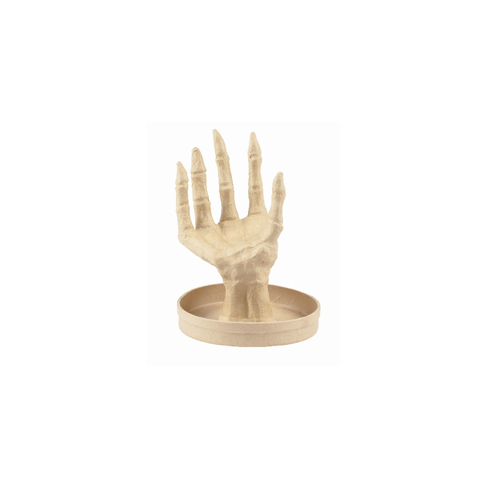 Schaal skelet rechterhand MULTI TECHNIEK : Deze schaal kan naar wens versierd worden met Décopatch papier, acrylverf, glitter, stickers of in zijn natuurlijke Kraft vorm worden behouden. De mogelijkheden zijn eindeloos! DIY DECORATIE: Een schaal om te personaliseren en je interieur op te fleuren. Ideaal om bordjes en kopjes op te plaatsen en te dragen. DECOPATCH TECHNIEK: Scheur of knip een paar stukjes Décopatch papier van ongeveer 2x2 cm. Breng de PaperPatch vernislijm - niet meegeleverd - aan op het te versieren oppervlak. Plaats een stukje papier op het gelijmde oppervlak en doe er een tweede laag lijm overheen. Herhaal dit proces door de stukjes papier te overlappen totdat het object geheel of gedeeltelijk bedekt is, waarbij je kleuren en patronen mengt. KENMERKEN: Deze schaal is handgemaakt van bruin papier-maché, waardoor elk stuk uniek is. Afmetingen: 15x7,5x11 cm. ONTWORPEN IN FRANKRIJK: Décopatch is een Frans merk dat deel uitmaakt van de groep Clairefontaine Rhodia. Het bedrijf is gevestigd in de omgeving van Lyon, waar een team enthousiastelingen vol passie voortdurend op zoek is naar nieuwe ideeën en trends op het vlak van personalisatie, decoratie en vrijetijdsbesteding.