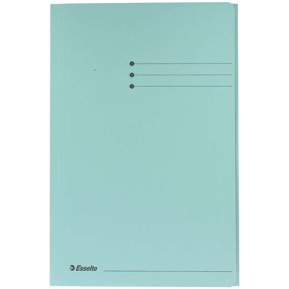De Esselte dossiermap blauw, formaat folio (23,3 x 35 cm), is een stevige map met drie kleppen, ideaal voor het veilig bewaren en organiseren van documenten tot 200 vellen in kantoor- of thuisomgeving.