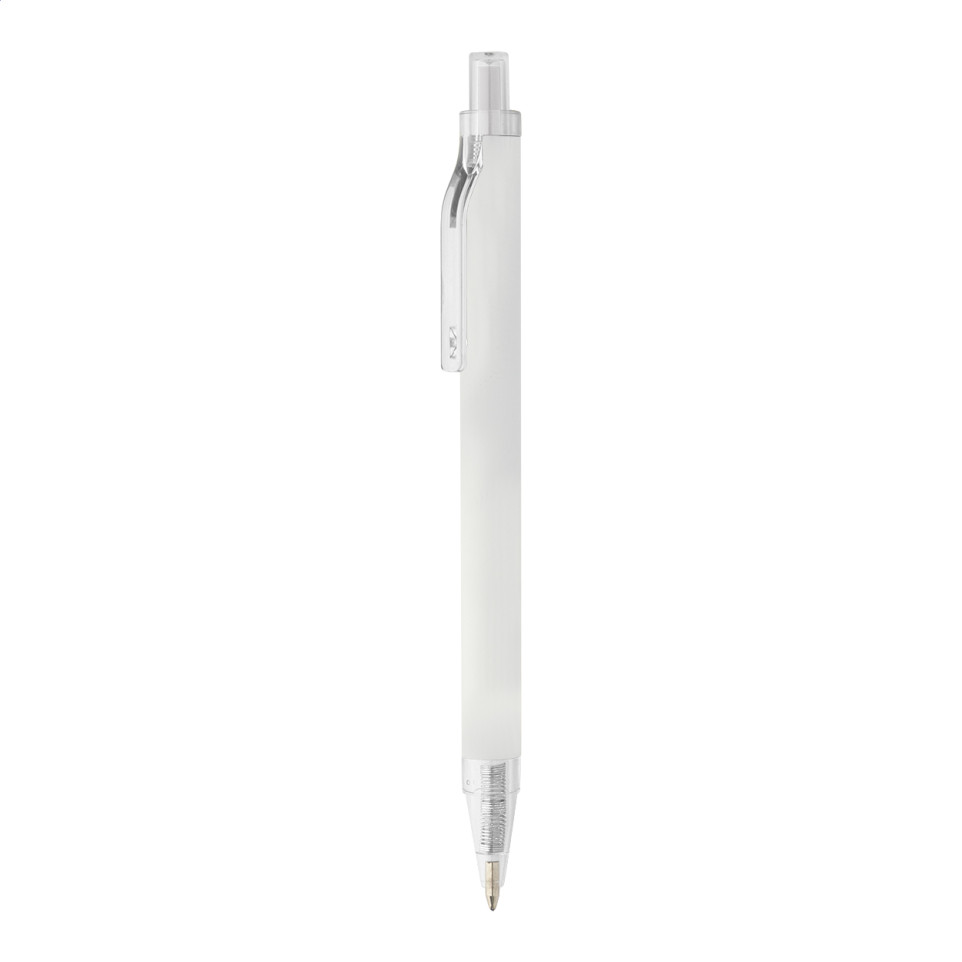 Gerecycleerde aluminium balpen met matte afwerking en transparante RPET-onderdelen. Blauwschrijvend. Ideaal voor dagelijks gebruik in kantoor of onderweg.