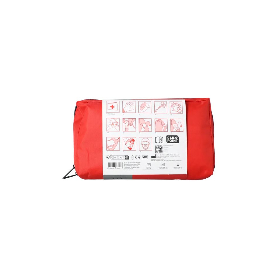 Het Carpoint 40-delige EHBO Set DIN 13164:2022 is een handige en uitgebreide EHBO-kit voor in de auto. Deze set bevat allerlei noodzakelijke materialen voor eerste hulp bij ongevallen.