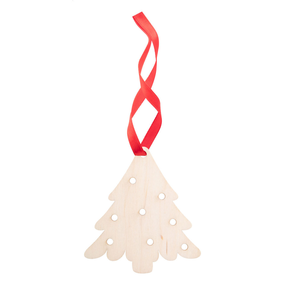 Welke materialen worden gebruikt? De kaart is gemaakt van stevig papier, het boompje van hout met een rood lint.