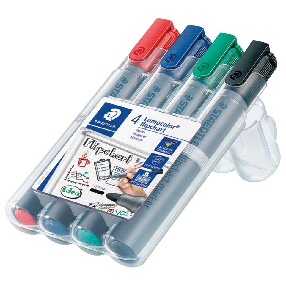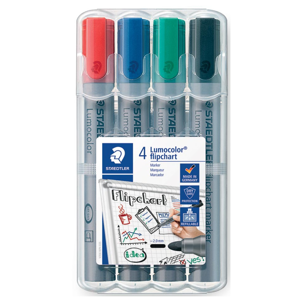 De Staedtler Lumocolor Flipchart markers zijn speciaal ontworpen voor professioneel gebruik op flipchartpapier. Ze zijn ideaal voor het schrijven en tekenen tijdens presentaties, brainstormsessies of trainingen in kantoor- of onderwijsomgevingen.