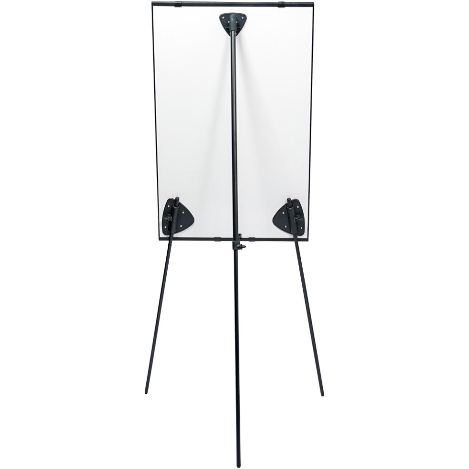 Plaats eenvoudig een flipchartblok op de klem bovenaan het bord. Schrijf direct op het magnetische oppervlak of hang notities met magneten op. De tripodpoten zorgen dat de flipchart stabiel staat en moeiteloos aan verschillende gebruikershoogtes kan worden aangepast.