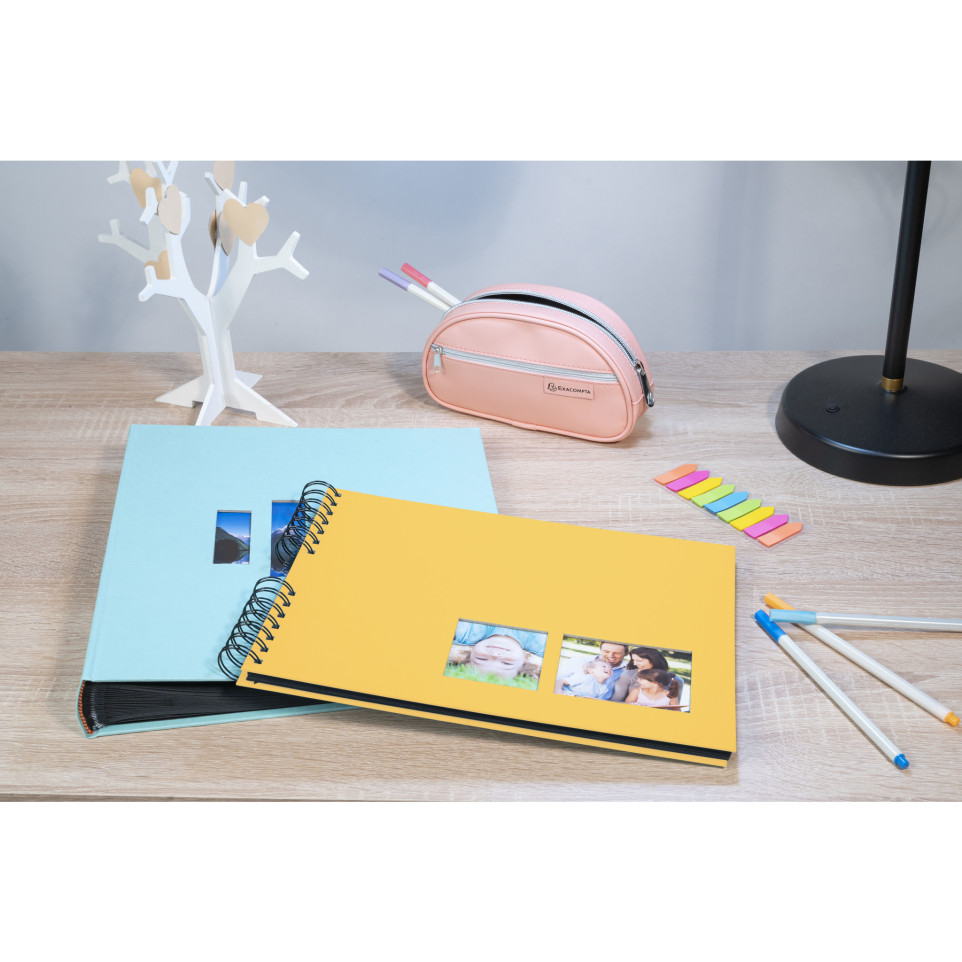 Fotoalbum met spiraal 50 zwarte pagina's Milano Deze albums in diverse heldere kleuren, formaten en voorzien van een uitsnijding om het album te personaliseren, zorgen voor een veelzijdig aanbod. U vindt altijd een album dat bij u past, en u kan de omslag personaliseren met een foto die u nauw aan het hart ligt. De omslag in gekleurd papier met textuureffect van het fotoalbum Milano met spiraal is zeer stevig, zodat u de meest dierbare herinneringen lang kunt bewaren. Bovendien heeft het product een ecologische dimensie dankzij de FSC®-certificering, en is het dus een uitstekende keuze als u op zoek bent naar een kwalitatief en duurzaam product. Het album met spiraal 32x22cm en zwart interieur is een praktisch en elegant formaat, uitermate geschikt voor het presenteren van ve rgrotingen. In dit album komen foto's van elk formaat tot hun recht. De binnenpagina's zijn gemaakt van stevig zwart karton van 250g/m2. Dankzij het hoogkwalitatieve papier blijven de foto's in dit album uitstekend bewaard, en kan het album ook worden gebruikt als Scrapbook. De fotoalbums met spiraal Milano 32x22cm en 50 pagina's hebben een capaciteit van 150 foto's 10x15cm. Dit product is ontworpen in Parijs en wordt voor 100% vervaardigd in onze fabrieken in Frankrijk.