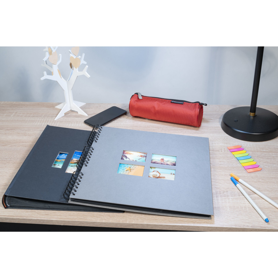 Fotoalbum met spiraal 60 zwarte pagina's Milano Deze albums in diverse heldere kleuren, formaten en voorzien van een uitsnijding om het album te personaliseren, zorgen voor een veelzijdig aanbod. U vindt altijd een album dat bij u past, en u kan de omslag personaliseren met een foto die u nauw aan het hart ligt. De omslag in gekleurd papier met textuureffect van het XL fotoalbum Milano met spiraal is zeer stevig, zodat u de meest dierbare her inneringen lang kunt bewaren. Bovendien heeft het product een ecologische dimensie dankzij de FSC®-certificering, en is het dus een uitstekende keuze als u op zoek bent naar een kwalitatief en duurzaam product. Het album met spiraal 32x32cm en zwart interieur is een groot formaat. Uitermate geschikt voor het kleven van foto's van elk formaat, staand of liggend, tot zeer grote vergrotingen. Op iedere pagina kunnen tot 6 foto's gekleefd worden. De binnenpagina's zijn gemaakt van stevig zwart karton van 250g/m2. Dankzij het hoogkwalitatieve papier blijven de foto's in dit album uitstekend bewaard. De fotoalbums met spiraal Milano 32x32cm en 60 pagina's hebben een capaciteit van 360 foto's 10x15cm. Dit product is ontworpen in Parijs en wordt voor 100% vervaardigd in onze fabrieken in Frankrijk.