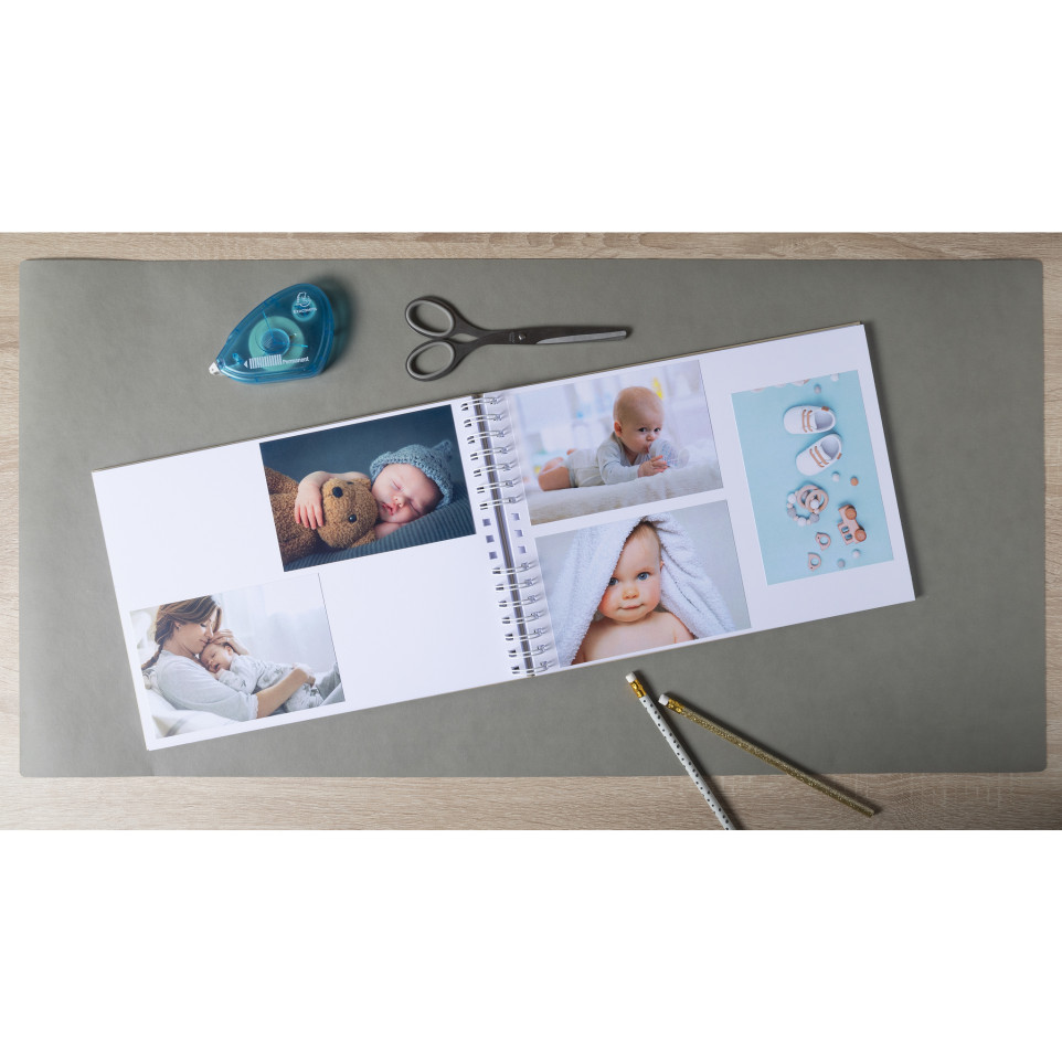 Album photo à spirales 50 pages blanches Sweet Les albums sweet proposent un choix de 3 couleurs légères et deux formats, qui assurent une polyvalence et la garantie pour vous de trouver un album avec un visuel très mignon qui correspondra parfaitement à votre enfant et s'accordera facilement avec la décoration de sa chambre. La couverture papier teinté de l'album Sweet est très résistante et agréable au toucher et vous permettra de conserver longtemps les souvenirs qui comptent le plus pour vous. De plus, sa fenêtre de personnalisation vous permettra d'habiller la couverture avec une photo qui vous tient particulièrement à coeur. L'album à spirales blanches 32x22cm est un format pratique et esthétique, en particulier pour présenter des agrandissements, et disp ose d'une bonne capacité de présentation pour photos de tous format à coller. Les pages intérieures de l'album sont réalisées en carte blanche rigide 250g/m2. Avec son papier haute qualité, cet album permet une excellente conservation des clichés. La capacité des albums à spirales Sweet 32x22cm et 50 pages est de 150 photos 10x15cm. Ce produit a été designé à Paris et il est fabriqué à 100% dans nos usines en France.