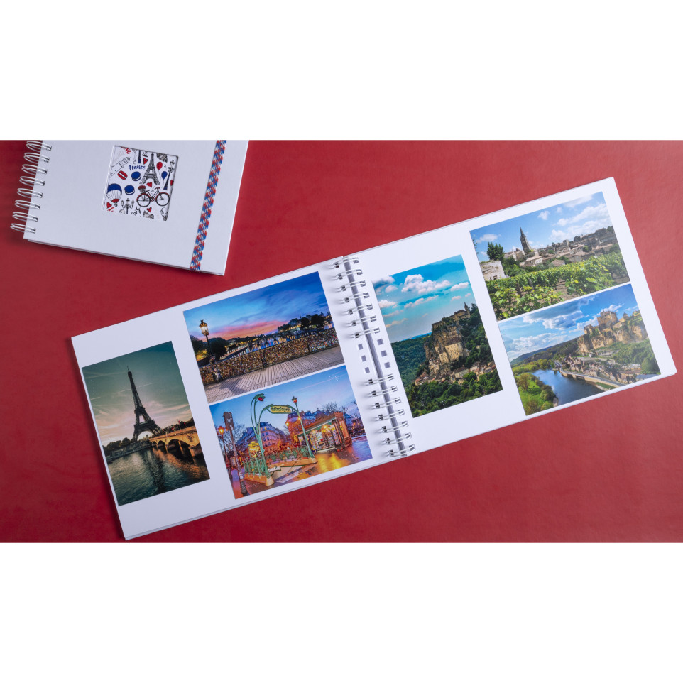 Album photo à spirales 50 pages blanches French'Class Imaginé, conçu puis fabriqué en France, l'album à spirales French'Class propose un design unique avec sa couverture en papier recouverte d'un film brillant et une fenêtre de personnalisation avec un visuel original et typiquement français ! L'élastique bleu/blanc/rouge permet de garder l'album très compact et ne pas laisser échapper vos souvenirs les plus précieux. L'album à spirales est disponible en deux formats pratiques et esthétiques pour des photos de format 10x15cm et plus. Couverture en papier coloré recouvert d'un film de protection brillant pour assurer une excellente résistance aux chocs et une durabilité dans le temps. Les pages intérieures de l'album sont réalisées en carte blanche rigide 250g/m2. Avec son papier haute qualité, cet album permet une excellente conservation des clichés. Le design de l'album a été créé à Paris et ce produit hautement écologique est fabriqué à 100% dans nos usines en France. La capacité de l'album French'Class au format 23x16cm et 50 pages est de 50 photos, contre 150 photos pour l'album au format 32x22cm 50 pages.