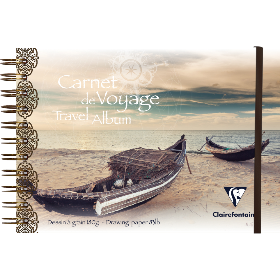 Travel Bk tekenpap.30bl 180g A5 motief Travel book, geschikt voor multi technieken. Gekorreld tekenpapier 180g met natuurlijke witheid en een lichte, regelmatige korrel. Een uiterst polyvalent papier,geschikt voor zowel droge als natte technieken. Album met een linnen omslag, personaliseerbaar en met een elastieksluiting.