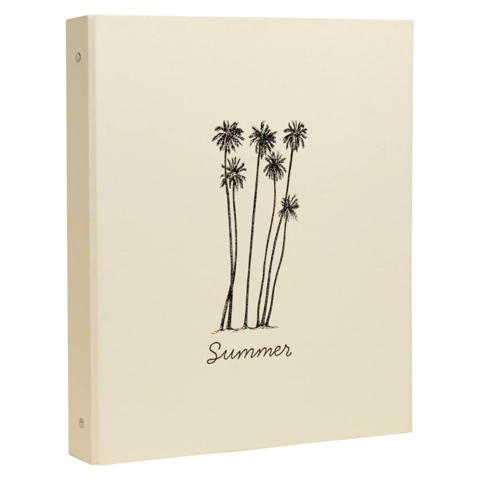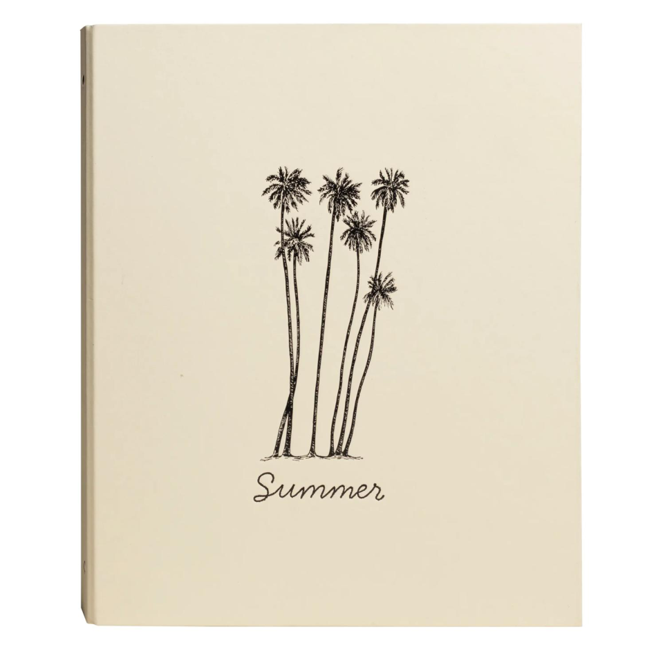 Album photos classeur 60 pages noires Summertime La gamme Summertime s'inspire des paysages de vacances avec ses teintes douces et évocatrices : Sable, Mer et Coucher de Soleil. Le timbrage noir brillant de palmiers sur la couverture apporte une touche graphique et dépaysante, parfaite pour conserver vos souvenirs d'été dans un esprit nature et détente. La couverture en papier lisse offre un toucher agréable et une belle finition. Elle est à la fois esthétique et respectueuse de l'en vironnement, en cohérence avec l'esprit écologique de la gamme. Grâce à son format classeur, l'album est entièrement personnalisable : il est possible d'ajouter des nouvelles pages, des pochettes ou de réorganiser l'ordre des pages selon ses envies. La mécanique robuste à bouton poussoir, fidèle à la qualité Exacompta, permet une manipulation fluide et sécurisée. Les pages intérieures au format A4 sont en papier noir 250g/m2 recyclé. Chaque feuille est séparée par un papier cristal, permettant de coller des photos en face à face tout en les protégeant durablement. L'album peut contenir jusqu'à 120 photos 10x15 cm, et jusqu'à 200 pages (soit 400 photos) avec les recharges vendues séparément (ref. 16816E) Pensé à Paris et fabriqué en France, l'album Summertime est certifié FSC®. Un choix engagé pour un produit à la fois beau et respectueux de l'environnement.