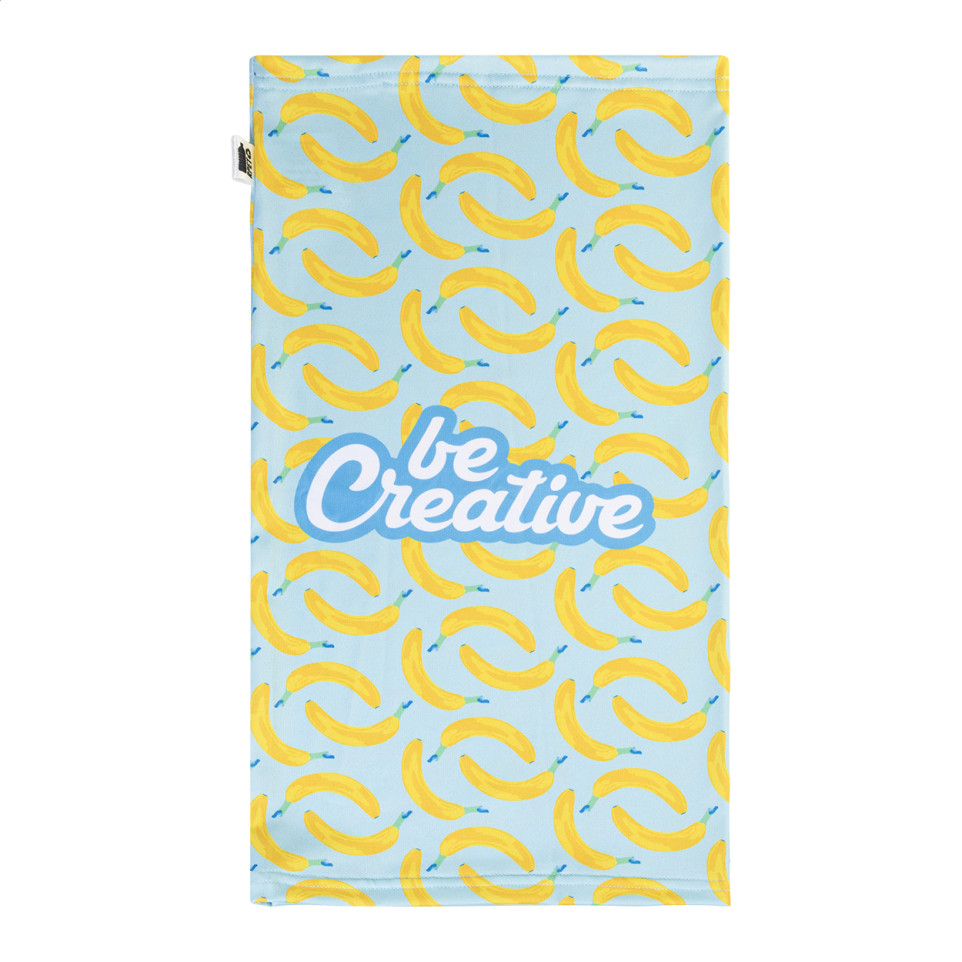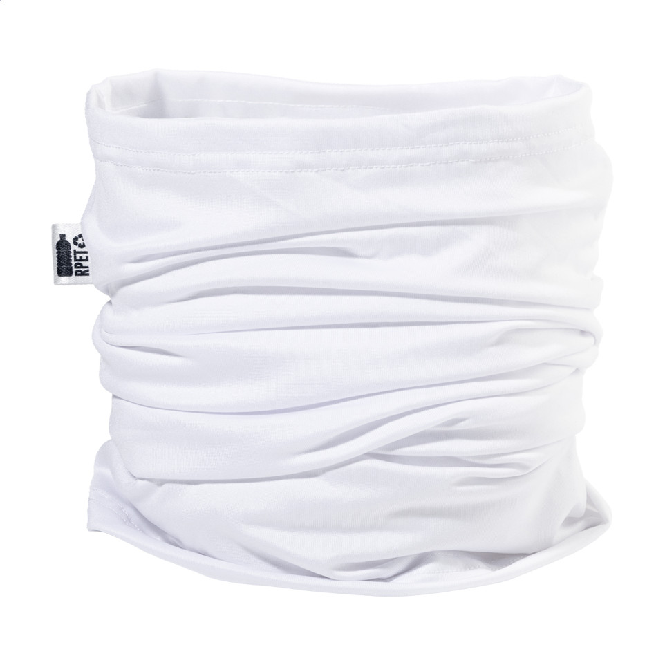 Multifunctionele sjaal van gerecycled polyester met volledig sublimatie-bedrukking, ideaal voor bedrijfsuitingen, evenementen en merkpromotie.