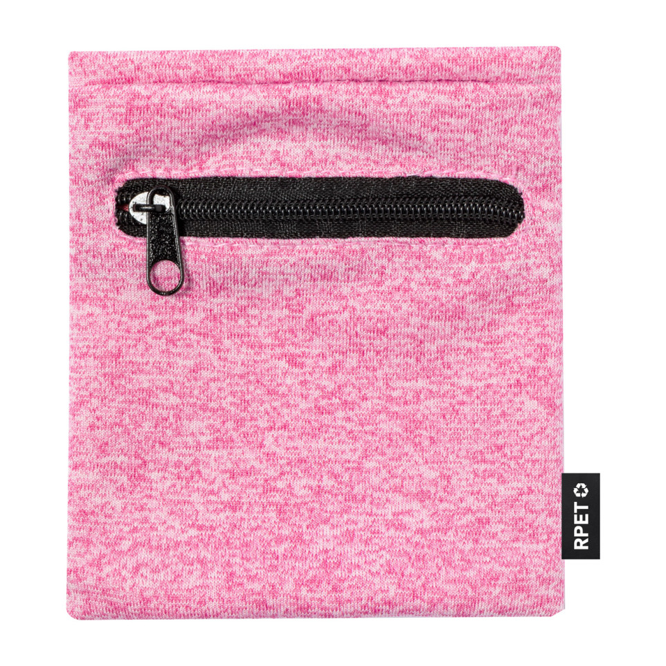 Praktisch RPET polsbandje in roze, ontworpen voor hardlopers en sportliefhebbers. De geïntegreerde ritszak biedt veilige opbergruimte voor kleine benodigdheden zoals sleutels, geld of een sportgels tijdens het hardlopen of trainen.