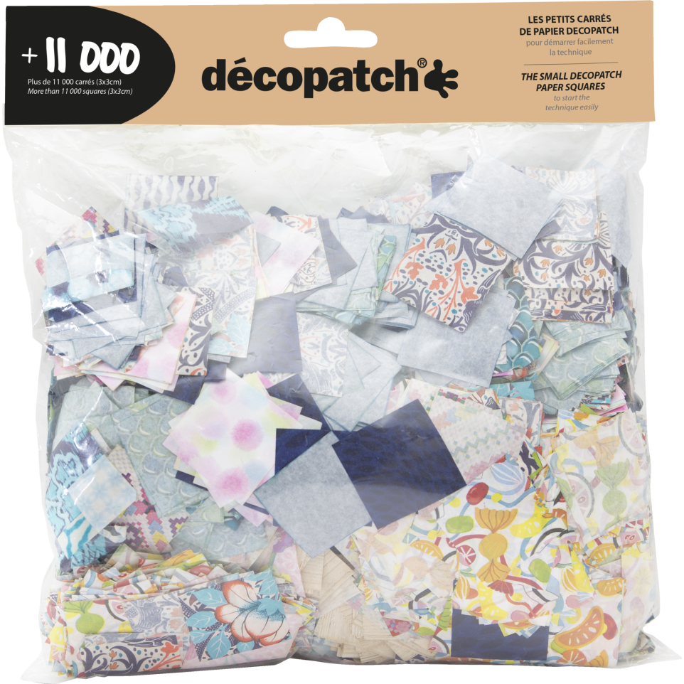 Maxi pak Décopatch 11000 vierkantjes 3x3cm Papier voor alle ondergronden: Décopatch papier vormt zich perfect naar de vorm van alle objecten, of ze nu plat of onregelmatig zijn, en hecht op alle materialen, zoals papier-maché, hout, plastic, ijzer, glas, polystyreen, metaal, terracotta, keramiek, kurk. Perfecte afwerking: Een zeer dun papier, gemakkelijk aan te brengen en erg duurzaam eens gelijmd. Décopatch papier is het enige papier dat zorgt een perfect gladde afwerking van al uw creaties, het lijken wel echte schilderijtjes! Ecologisch: Met Décopatch kunt u een oud meubelstuk nieuw leven inblazen, teruggevonden schatten moderniseren, een origineel cadeau bedenken en maken voor een verjaardag, een huwelijk. Eenvoudige techniek: Décopatch richt zich zowel naar kinderen vanaf 5 jaar als naar volwassenen. Scheur of knip een paar stukjes Décopatch papier van ongeveer 2x2 cm. Breng de PaperPatch vernislijm - niet meegeleverd - aan op het te versieren oppervlak. Leg een stukje papier op het gelijmde oppervlak en doe er een tweede laag lijm overheen. Herhaal dit proces door de stukjes papier te overlappen totdat het object geheel of gedeeltelijk bedekt is. Een papier voor alle leeftijden: Kinderen vanaf 5 jaar of volwassenen, beginners of gevorderden, Décopatch is geschikt voor alle leeftijden en alle niveaus! Gemaakt in Frankrijk: Décopatch is een Frans merk dat deel uitmaakt van de Clairefontaine Rhodia groep. Wij bieden kwaliteitsproducten voor personalisatie, decoratie en vrije tijd.