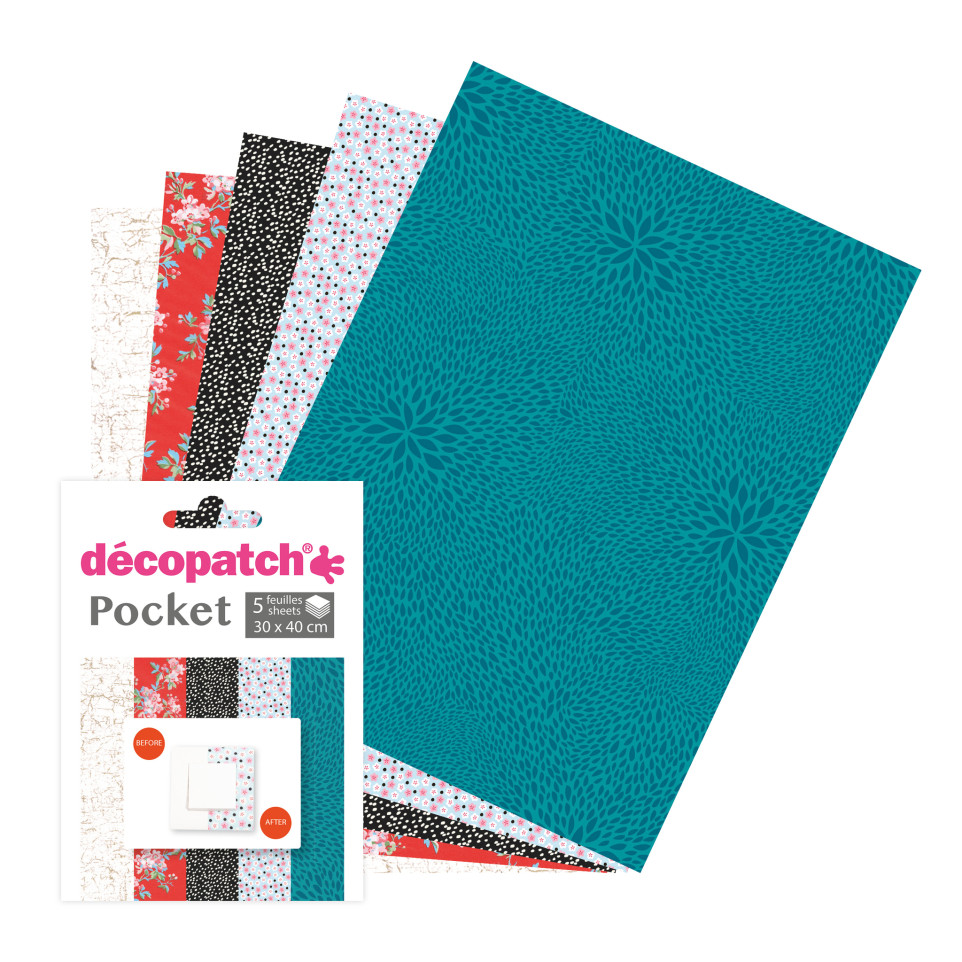 Décopatch Pocket collectie n°2. Liever landelijk of stedelijk? Zie je het leven in blauw of roze? Décopatch heeft voor u 12 collecties met verschillende papiersoorten gemaakt. Elk zakje bevat 5 vel Décopatch (30x40 cm) om sieraden of decoratieve items te versieren. Praktisch klein formaat om overal mee te nemen. Aan de slag...er is vast en zeker een collectie Pocket Decopatch die voor u gemaakt is!