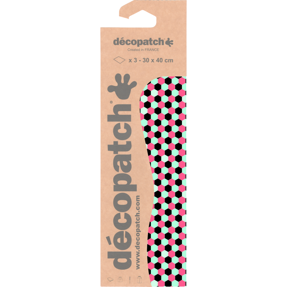 Décopatch 3 identieke bladen - ref 719. Het Décopatch papier kan op alle oppervlakken (plat of volumineus) en op alle materialen (papier, hout, plastic, ijzer, glas, polystyreen ...) toegepast worden. Zelfs op stof (katoen, linnen...) wanneer deze uitgerekt wordt! Het papier scheurt niet als het gelijmd is en de kleuren vervagen niet. Er is een motief voor elke decoratie....diverse trends, dots of strepen, uni of patronen, pop of savanne-versie ...! Het papier is zeer eenvoudig aan te brengen dankzij haar fijne structuur en weerstand. Eenmaal gelijmd is het Décopatch papier het enige papier dat de illusie van een schilderij wekt en uw creatief werk een professionele uitstraling geeft ! Om met kleine stukjes op eenvoudige deco objecten aan te brengen. Wees niet bescheiden en maak van een eenvoudig object een kunstwerk !