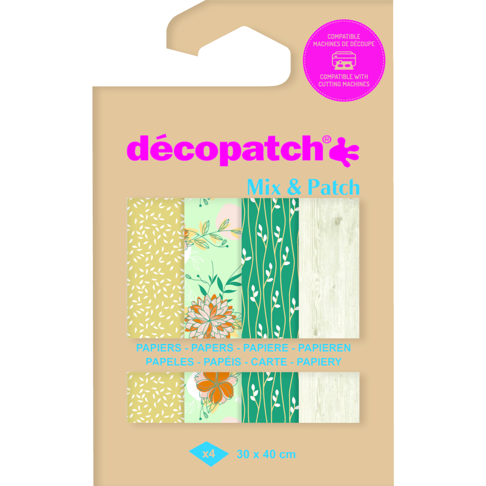 Mix & Patch - Natur'elle SET VAN 4 VELLEN: De verpakking bevat 4 verschillende Décopatch vellen van elk 30x40 cm. 4 verschillende en kleurrijke motieven om het object van je keuze te personaliseren! Papier voor alle ondergronden: Décopatch papier vormt zich perfect naar de vorm van alle objecten, of ze nu plat of onregelmatig zijn, en hecht op alle materialen, zoals papier-maché, hout, plastic, ijzer, glas, polystyreen, metaal, terracotta, keramiek, kurk. Perfecte afwerking: Een zeer dun papier, gemakkelijk aan te brengen en erg duurzaam eens gelijmd. Décopatch papier is het enige papier dat zorgt een perfect gladde afwerking van al uw creaties, het lijken wel echte schilderijtjes! Ecologisch: Met Décopatch kunt u een oud meubelstuk nieuw leven inblazen, teruggevonden schatten moderniseren, een origineel cadeau bedenken en maken voor een verjaardag, een huwelijk. Een papier voor alle leeftijden: Kinderen vanaf 5 jaar of volwassenen, beginners of gevorderden, Décopatch is geschikt voor alle leeftijden en alle niveaus! Gemaakt in Frankrijk: Décopatch is een Frans merk dat deel uitmaakt van de Clairefontaine Rhodia groep. Wij bieden kwaliteitsproducten voor personalisatie, decoratie en vrije tijd.