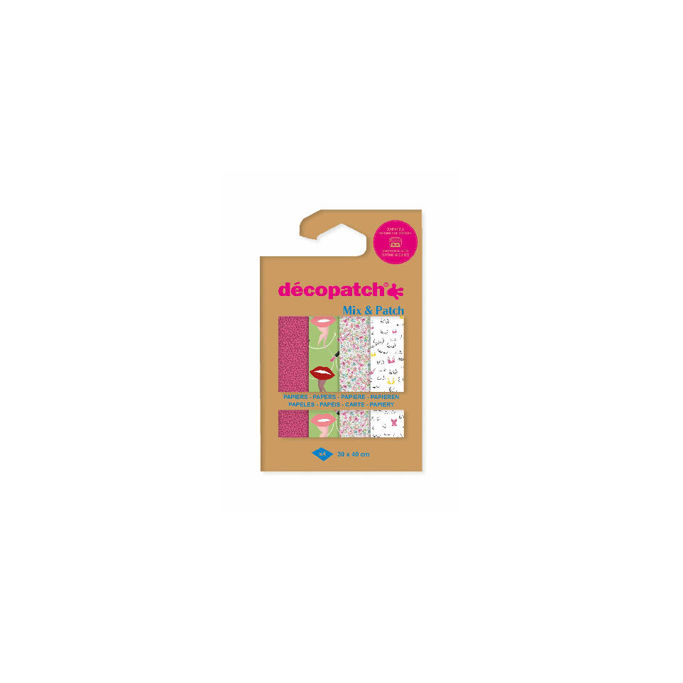 Mix & Patch - Ode aan de Vrouw SET VAN 4 VELLEN: Dit etui bevat 4 verschillende Décopatch vellen van elk 30x40 cm. 4 verschillende en kleurrijke motieven om het object van je keuze te personaliseren! PAPIER VOOR ALLE ONDERGRONDEN: Décopatch papier vormt zich perfect naar de vorm van alle objecten, of ze nu plat of onregelmatig zijn, en hecht op alle materialen, zoals papier-maché, hout, plastic, ijzer, glas, polystyreen, metaal, terracotta, keramiek, kurk. PERFECTE AFWERKING: Een zeer dun papier, gemakkelijk aan te brengen en erg duurzaam eens gelijmd. Décopatch papier is het enige papier dat zorgt een perfect gladde afwerking van al uw creaties, het lijken wel echte schilderijtjes! ECOLOGISCH: Met Décopatch kun je objecten personaliseren, of oude, beschadigde en verkleurde voorwerpen nieuw leven inblazen. Geen v erspilling meer: niet weggooien, maar renoveren en er plezier aan beleven.Ecologisch: ONTWORPEN IN FRANKRIJK: Décopatch is een Frans merk dat deel uitmaakt van de groep Clairefontaine Rhodia. Het bedrijf is gevestigd in de omgeving van Lyon. Het Décopatch-papier wordt ontworpen en vervolgens bedrukt in Frankrijk.