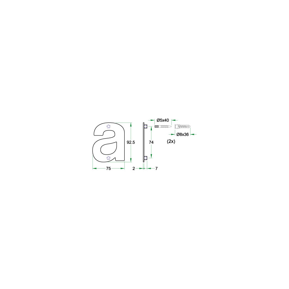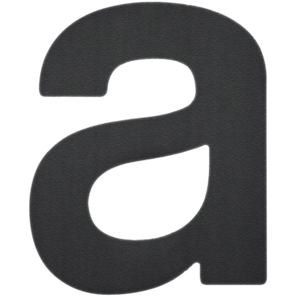 Letter ZWART Plat ''a'' 92,5mm / Pce is een strakke, platte huisletter in de kleur zwart met een hoogte van 92,5 mm. Ideaal voor duidelijke en moderne nummering op deuren, poorten of gevels.