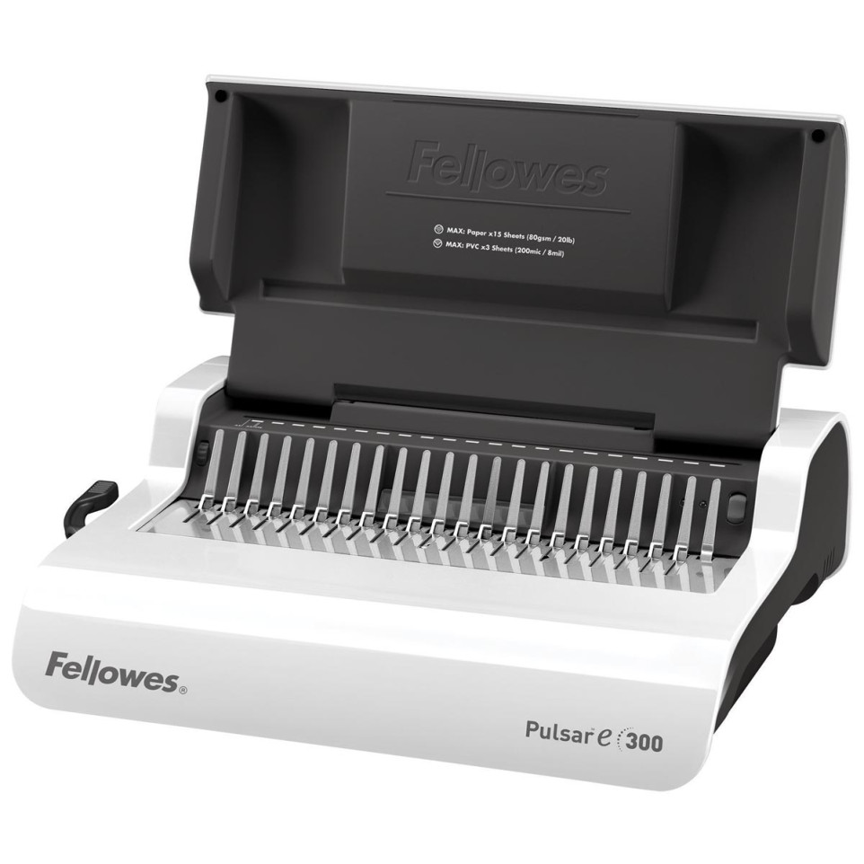 De Fellowes elektrische inbindmachine Pulsar-E is ontworpen voor het snel en efficiënt binden van professionele documenten met plastic bindruggen. Ideaal voor dagelijks kantoorgebruik, presentaties of rapporten tot 300 pagina's.