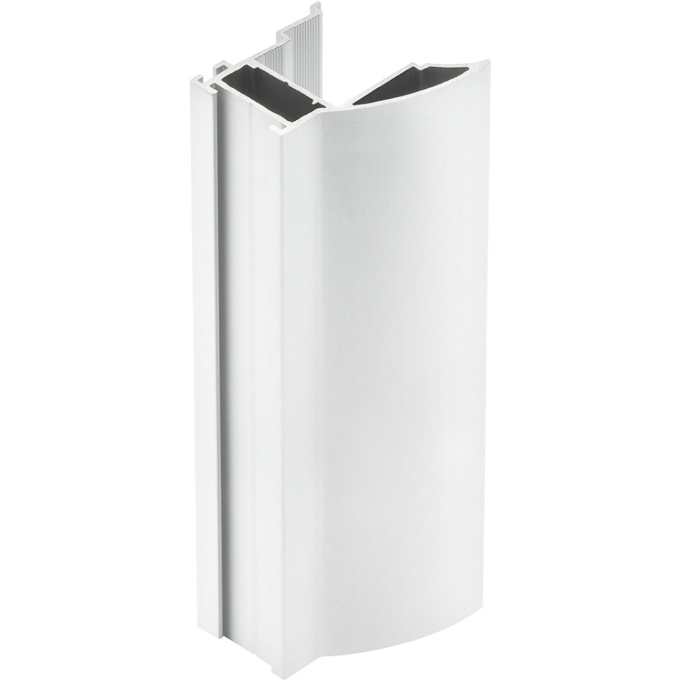 Greepprofiel NOVO S 18/4 van wit aluminium, geschikt voor 18 mm dikke houten panelen of 4 mm dik glas. Lengte: 2,70 m. Ontworpen voor een efficiënte en nette afwerking bij het indelen van inloopkasten.