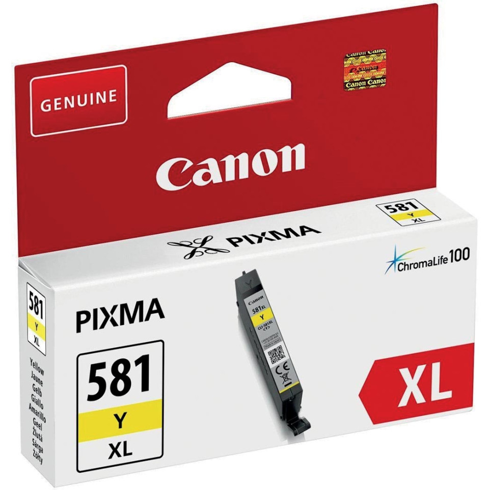 De Canon inktcartridge CLI-581Y XL is geschikt voor het printen van 199 foto's en is ontworpen voor gebruik in Canon-inkjetprinters.