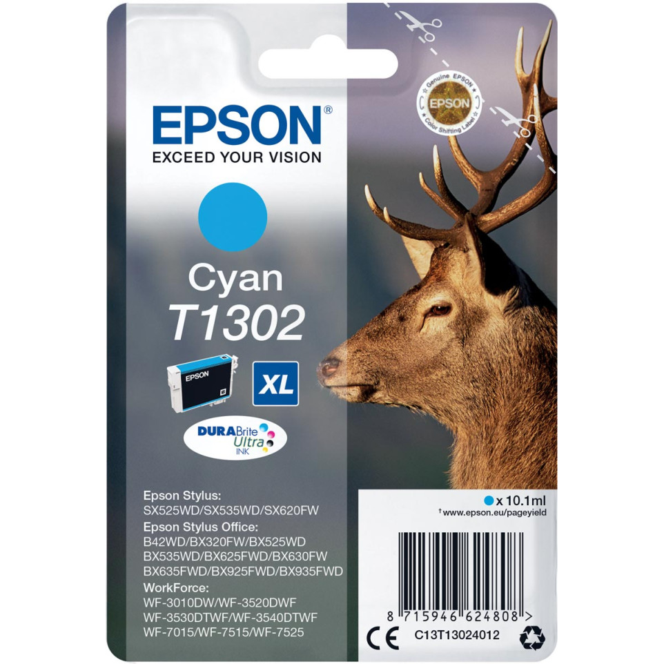 De Epson inktcartridge T1302 is een originele cyaan cartridge ontworpen voor diverse Epson inkjetprinters, waaronder Stylus BX 320, SX 235 W, SX 420, SX 525 en WF 3500. Ideaal voor thuisgebruik of op kantoor waar betrouwbaarheid en consistente printkwaliteit belangrijk zijn.