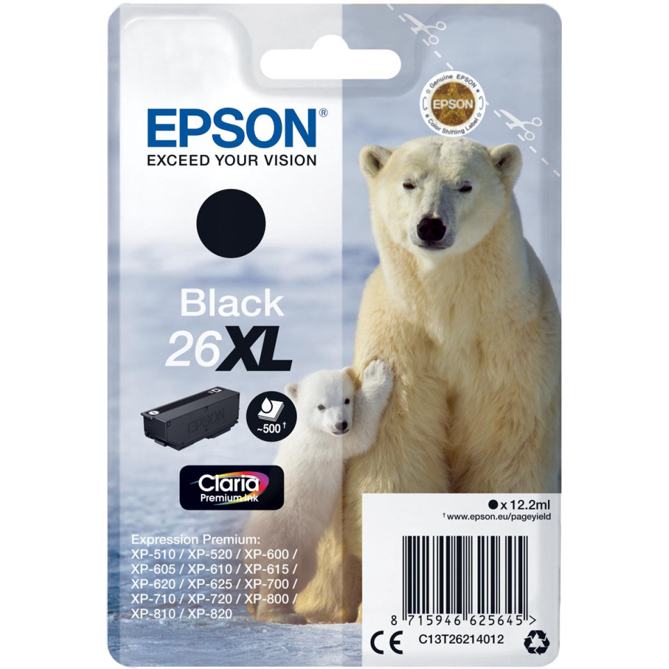 De Epson inktcartridge 26XL is geschikt voor het printen van 500 pagina's in zwart. Het is een OEM-product met de code C13T26214012.