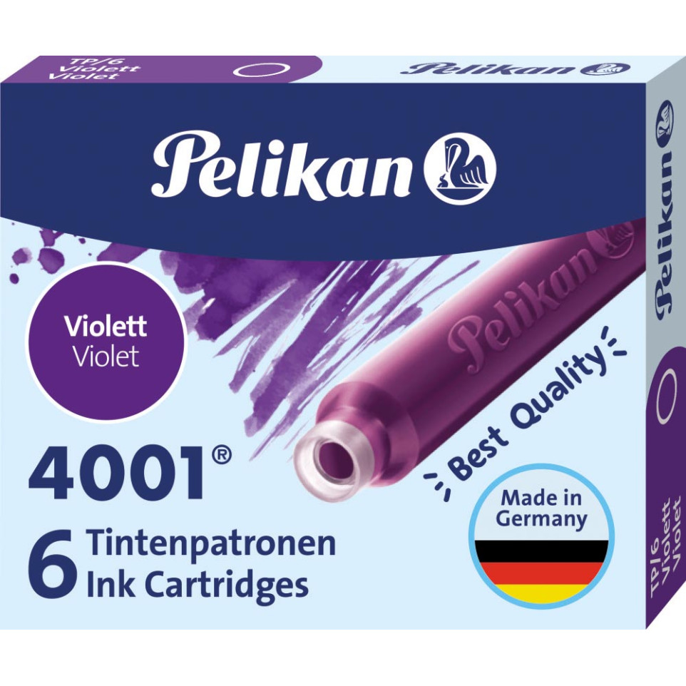 Pelikan 4001 inktpatronen paars zijn standaard inktpatronen geschikt voor alle Pelikan vulpennen en veel andere merken. De verpakking bevat 6 paarse patronen, ideaal voor dagelijks schrijfgebruik.