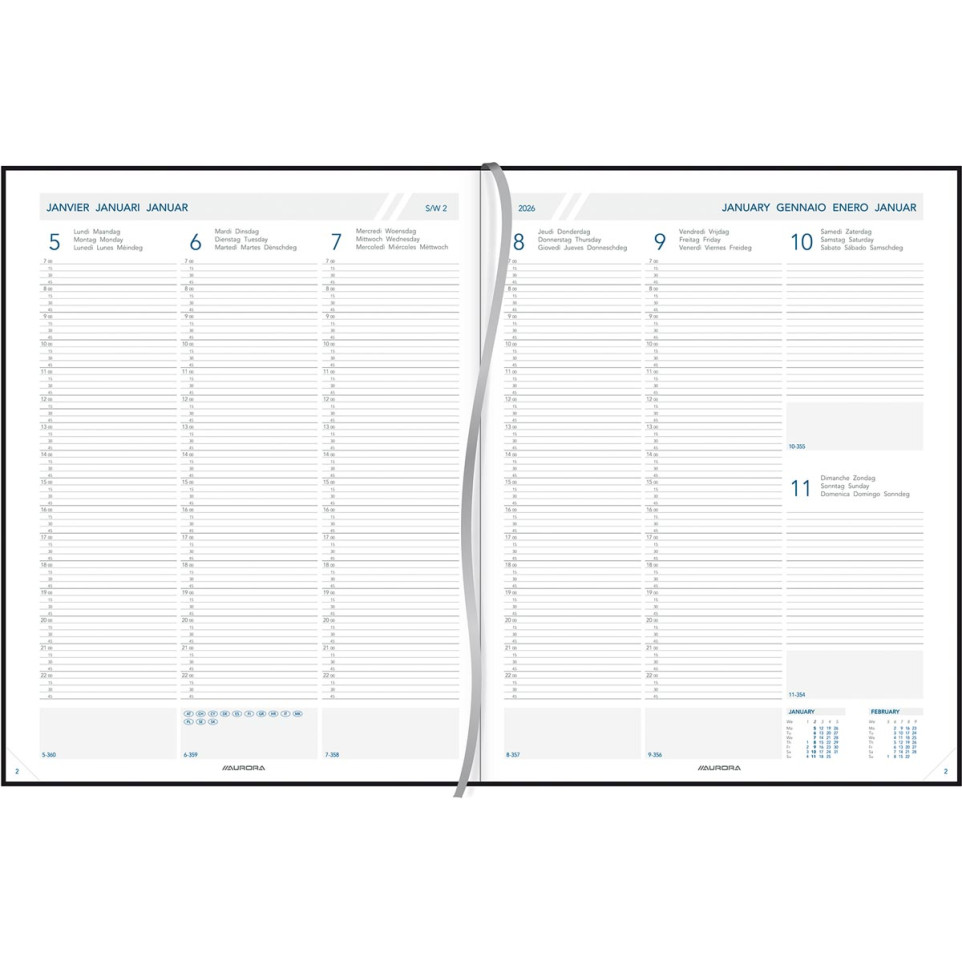 De Aurora Plan-a-week 27 Florence, zwart 2026 is een ruime kantooragenda met een overzichtelijke weekindeling per twee pagina’s. Perfect voor professionals die hun weken gedetailleerd willen plannen en overzicht willen houden.