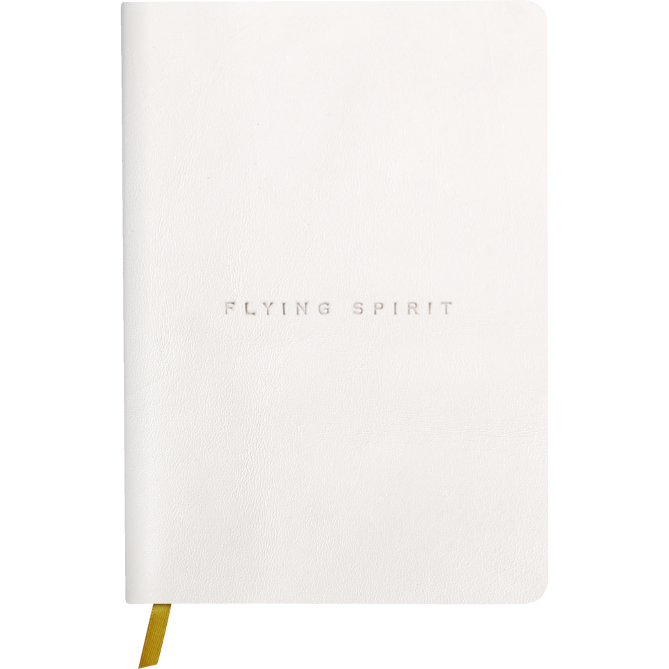 Flying Spirit White glad leder - Notaboek hardcover A5 90 blad - ivoorkleurig papier 90g - DOT gelijnd Edel, warm en kostbaar materiaal, leer past natuurlijk in de authentieke stijl van de Flying Spirit-collectie. Leren items van Flying Spirit bieden meerdere facetten en zorgen voor een look die zowel sober als assertief is. Topkwaliteit echte lamslederen omslag met reliëflogo, flexibel en zacht aanvoelend! Genaaide notebook, handmatig gevormd met behulp van traditionele en zorgvuldige knowhow. Bladwijzerslint waarmee u snel de laatst gebruikte pagina kunt vinden. Geleverd in een kraftdoos. Ivoorkleurig Velijn fluweelzacht 90g-papier, voor een uniek schrijfplezier, gemaakt in Frankrijk door Clairefontaine. PEFC gecertifi ceerd, voor duurzaam bosbeheer.
