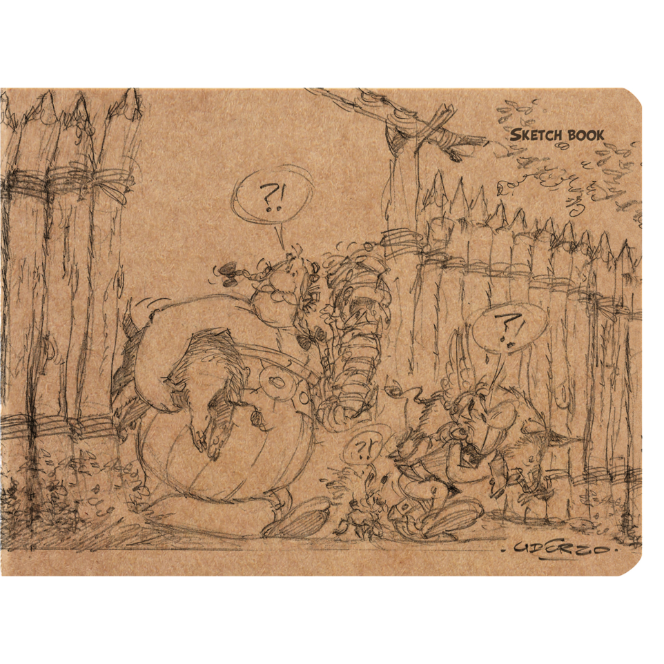 Ast3 Crayonnés Kraft Sketchbook cousu 16x21 cm, 60 pages Astérix a un caractère patrimonial, il fait partie intégrante de la culture française et bien au-delà. Dessins originaux de Albert Uderzo imprimés. Couverture en papier kraft 275g très esthétique et originale. Papier uni ivoire 90g idéal pour le dessin et la prise de notes.