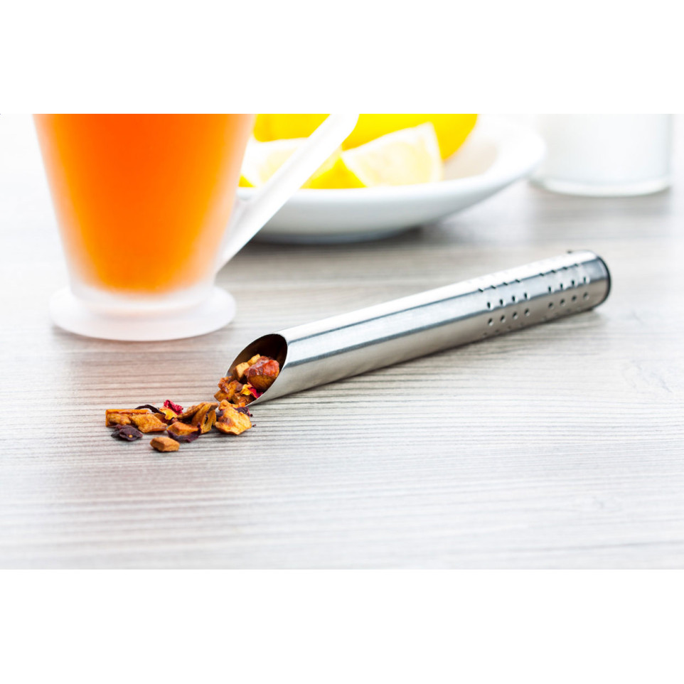 Deze zilverkleurige thee-infuser, gemaakt van roestvrij staal, is ideaal voor het snel en efficiënt bereiden van losse thee. Geschikt voor elk theeglas of mok, eenvoudig in gebruik en gemakkelijk te reinigen.