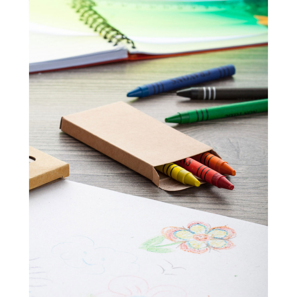 De krijtjes zijn gemaakt van gekleurd krijt en voorzien van een papieren wikkel.