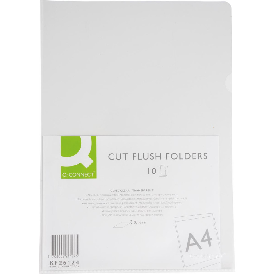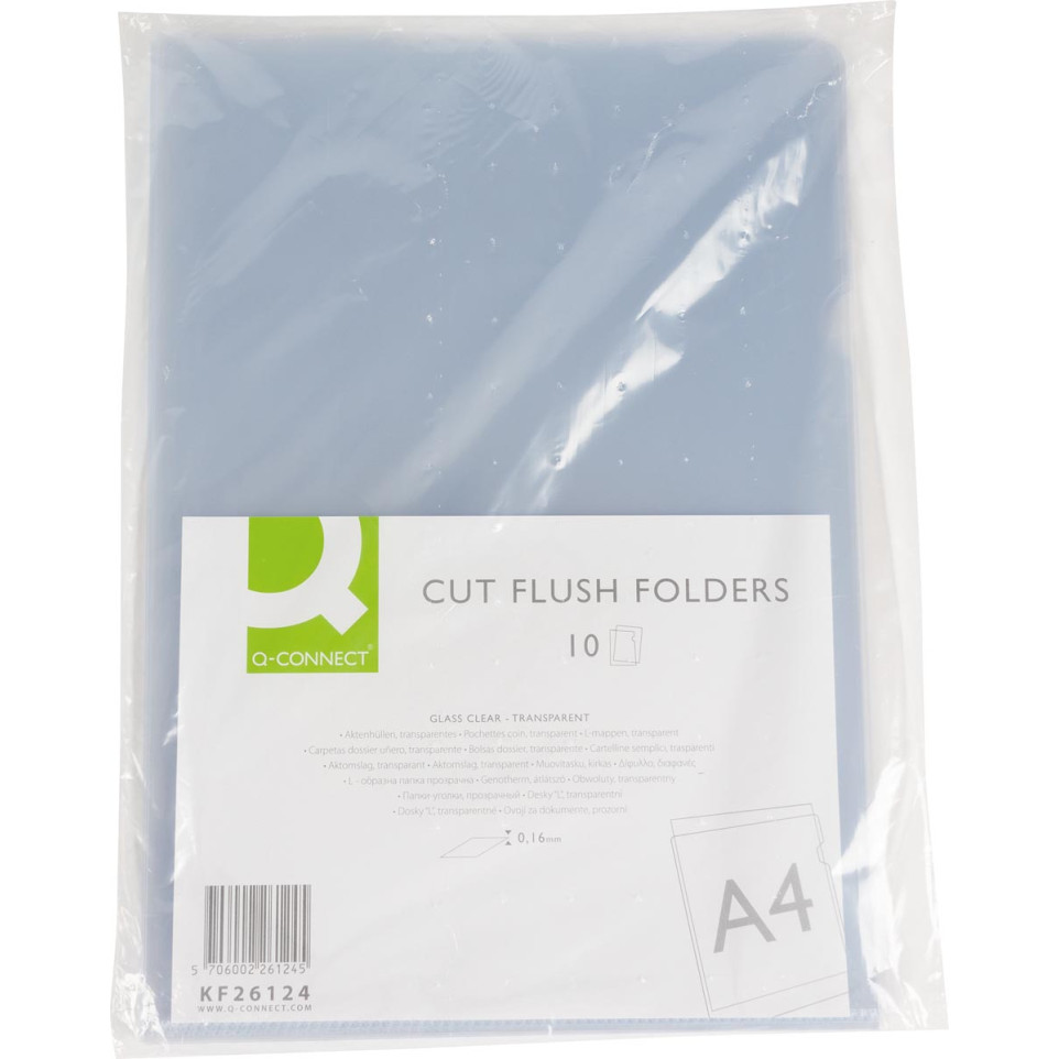 Q-CONNECT L-mappen zijn ontworpen voor het opbergen en presenteren van A4-documenten. Gemaakt uit glashelder polypropyleen van 160 micron, bieden ze een transparante bescherming voor belangrijke papieren. Verpakt per 10 stuks, ideaal voor kantoor en thuisgebruik.