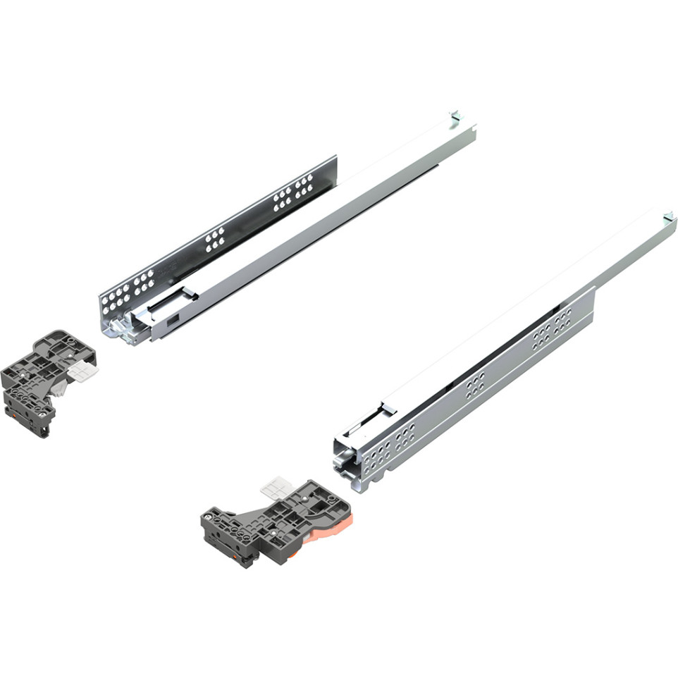 Paar Magic-Move volledig uittrekbare loopwagens met soft close van DTC bieden geruisloos en soepel sluitcomfort voor lades in keukens, meubels en andere interieuroplossingen. Maximaal draagvermogen: 40 kg. Lengte: 450 mm, volledig uitgetrokken.