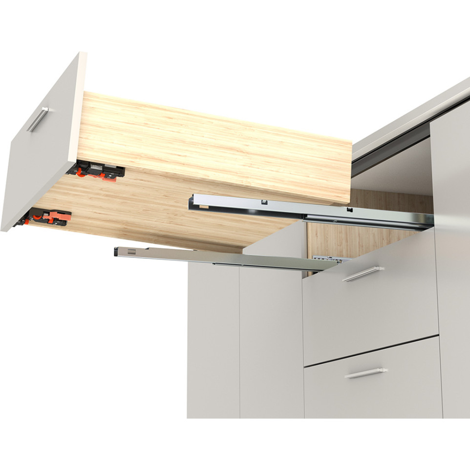 Het systeem dempt het sluiten van de lade waardoor deze automatisch, soepel en stil sluit.