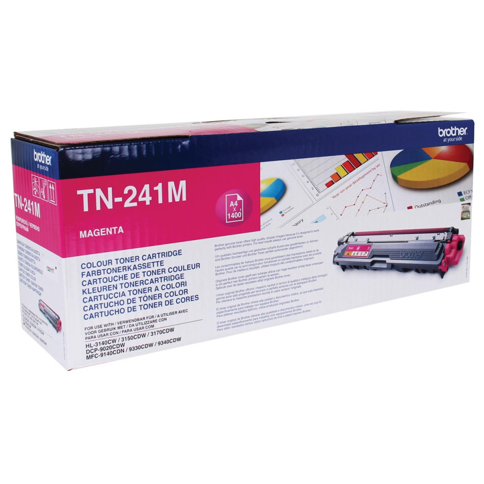 Brother TN-241M magenta toner is geschikt voor diverse Brother laserprinters, zoals de MFC-9330 CDW, HL-3150 CDW, MFC-9340 CDW, HL-3140 CW, DCP-9020 CDW, HL-3170 CDW, MFC-9140 CDN, MFC-9130 CW en HL-3150 CDN. Ideaal voor het printen van levendige kleurenafdrukken.