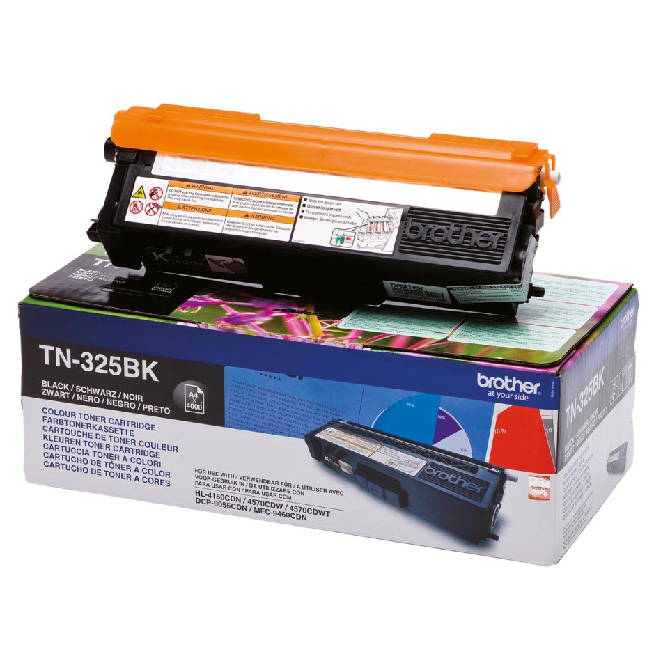 Plaats eenvoudig de TN-325BK toner in uw compatibele Brother printer. De originele cartridge zorgt voor consistente, professionele zwart-witafdrukken en voorkomt onnodig papier- of tonerverlies. Geschikt voor bureaus met een gemiddeld tot hoog printvolume.