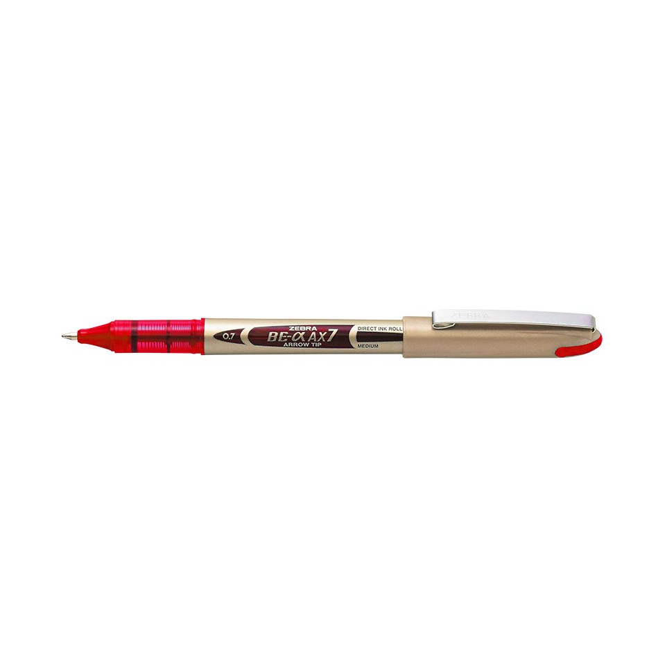 De ZEBRA AX-7 is een rollerball pen met een medium punt van 0,7 mm, ideaal voor dagelijks schrijfwerk op kantoor, school of thuis. De pen schrijft vloeiend in het rood en biedt een comfortabele schrijfervaring.