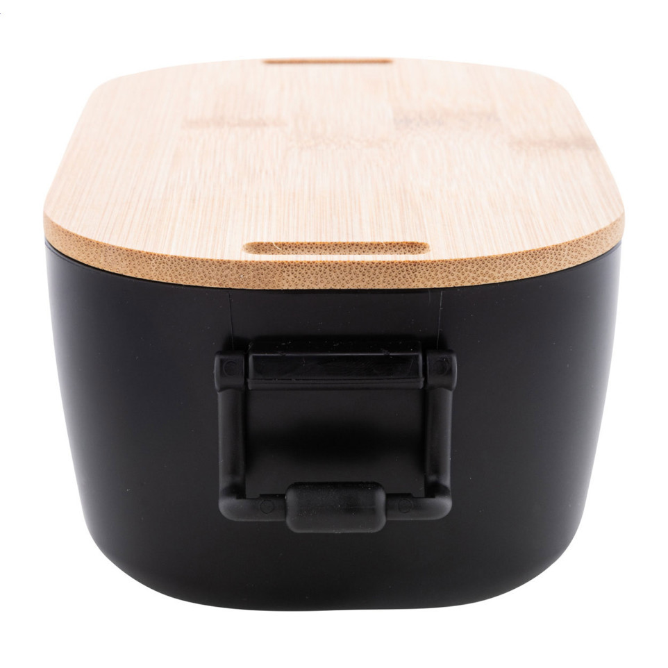 De Fuboo zwarte lunchbox is een praktische lunchbox van PP kunststof met een bamboe deksel en stevige gespsluiting. Met een inhoud van 1000 ml is deze ideaal voor lunch op het werk, onderweg of tijdens uitstapjes.