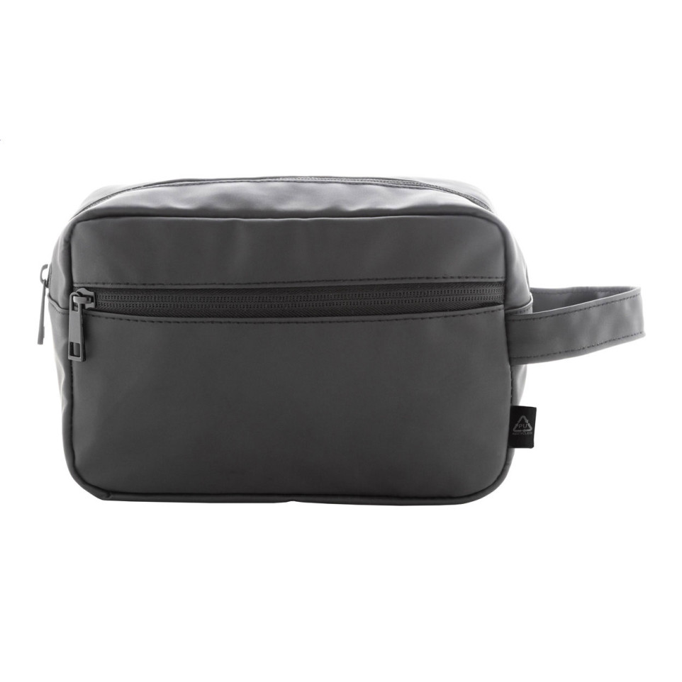De Cospu cosmeticatas is een zachte, zwarte tas gemaakt van gerecycled PU-leder met twee ritsvakken en een handige draaggreep. Perfect voor het opbergen van make-up en verzorgingsproducten tijdens reizen of dagelijks gebruik.