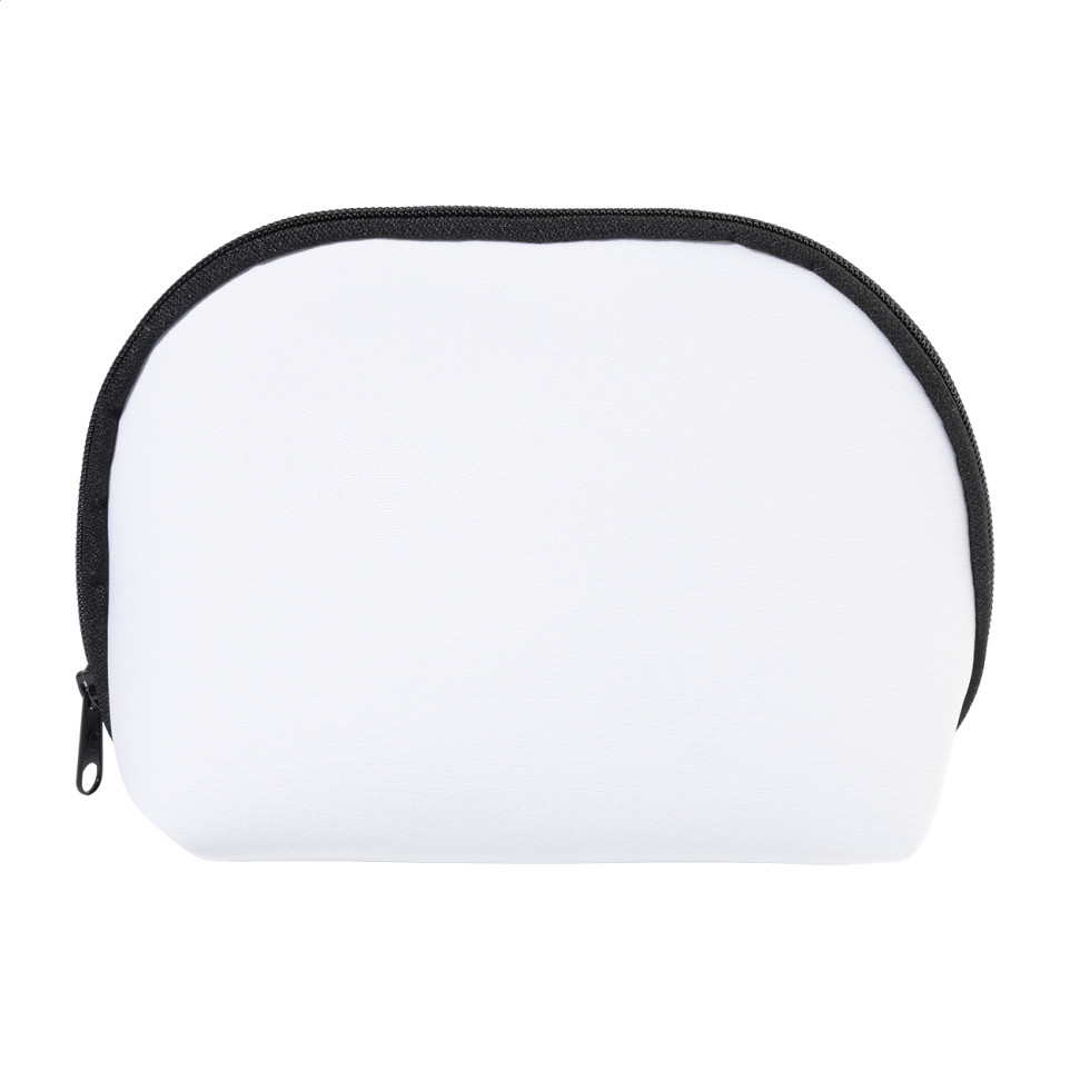 De CreaBeauty Soft M is een custom made toilettas in zwart RPET-neopreen, voorzien van een ritssluiting. Ideaal als duurzame en stijlvolle opbergoplossing voor cosmetica en reisaccessoires.