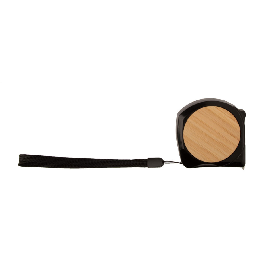 Handige, zwarte rolmaat van 5 meter, gecombineerd uit kunststof en bamboe. Ideaal voor zowel professioneel gebruik op de bouwplaats als in huis voor klussen en meetwerk.