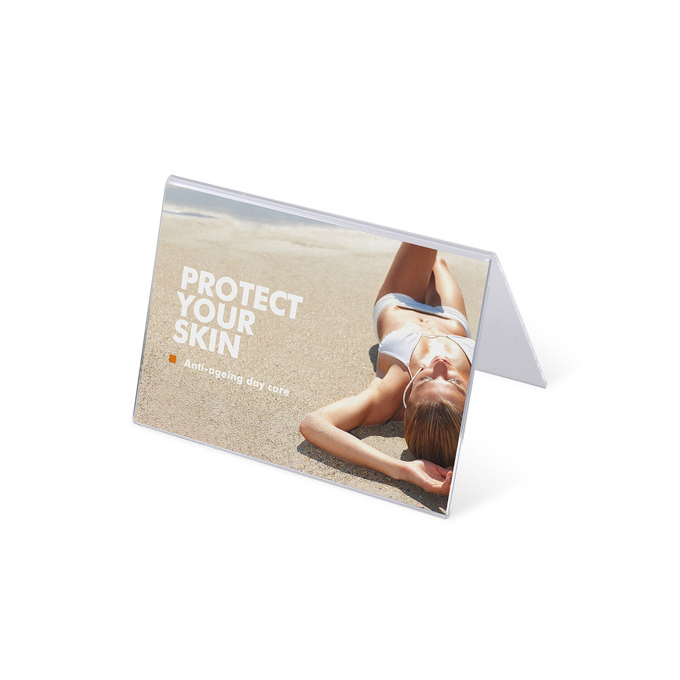 Plaats eenvoudig een gevouwen informatieblad tussen de transparante panelen van de houder. Zet de standaard op een vlakke ondergrond om uw boodschap duidelijk te presenteren aan klanten of bezoekers.