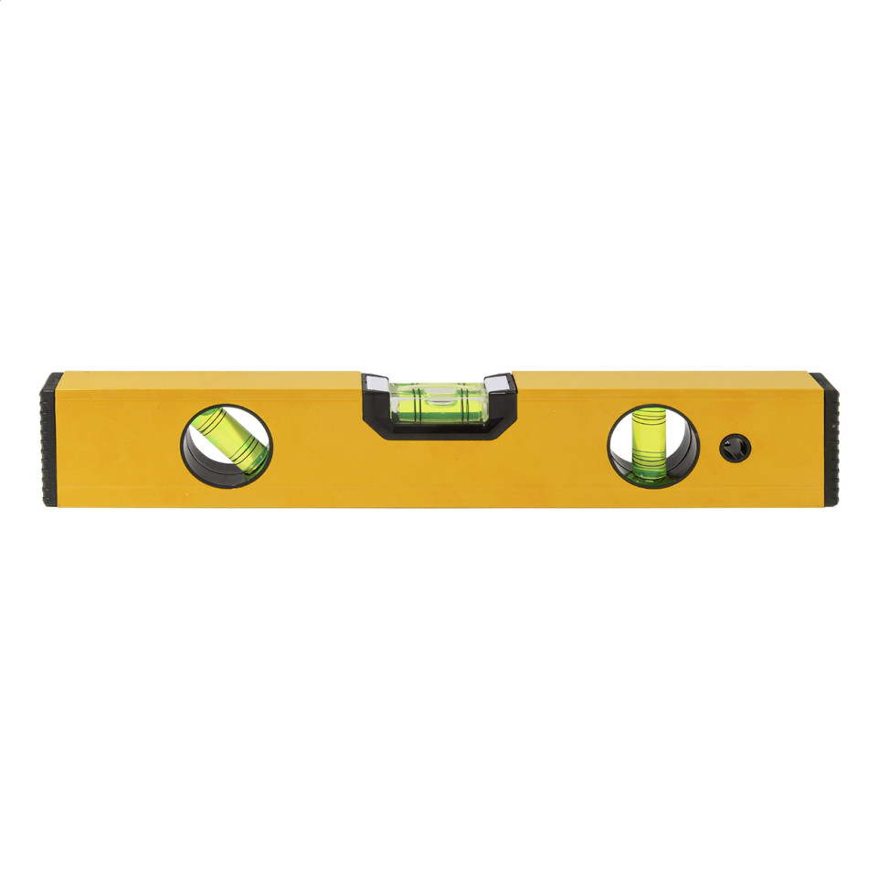 Ratupass geel geestniveau is een magnetische waterpas van gerecycled aluminium, voorzien van drie meetniveaus (horizontaal, verticaal en 45°) en een geïntegreerde liniaal van 30 cm. Ideaal voor nauwkeurige toepassingen in bouw, montage en techniek.