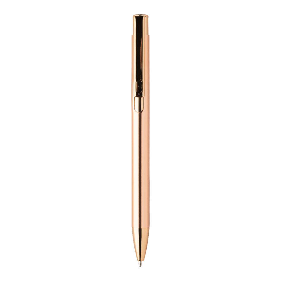Oronos roze balpen is een elegante balpen vervaardigd uit gerecycled aluminium, voorzien van een glanzende metallic afwerking en uitgerust met een blauwe navulling. Geschikt voor dagelijks gebruik op kantoor, thuis of onderweg.