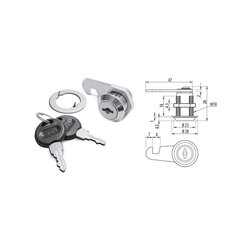 Haakslot met cilinder, rozet en twee sleutels. Dit meubelcilinderslot is geschikt voor kasten, lades of vitrines waar veilige afsluiting gewenst is. Het compacte ontwerp maakt montage mogelijk in diverse meubelstukken.