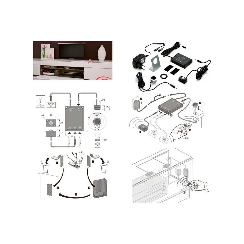 Deze infrarood repeater set maakt het mogelijk om audio- en videoapparatuur achter gesloten kastdeuren of in een tv-meubel te bedienen met uw bestaande afstandsbediening, zonder de deuren te openen.