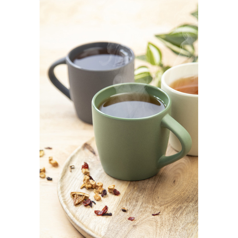 De Matara groene mug is een hoogwaardige keramische beker met een matte buitenkant en glanzende binnenkant. Met een capaciteit van 300 ml wordt deze stijlvolle mug geleverd in een kraft papieren doos, perfect voor dagelijks gebruik op kantoor of thuis.