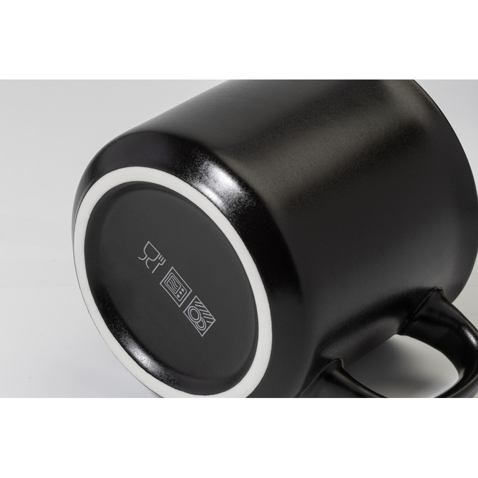 De Woodstock Flat zwarte vintage mok is een keramische mok met matte buitenkant en glanzende binnenkant, 300 ml inhoud. Perfect voor dagelijks gebruik thuis of op kantoor, ideaal voor koffie, thee of warme chocolademelk.